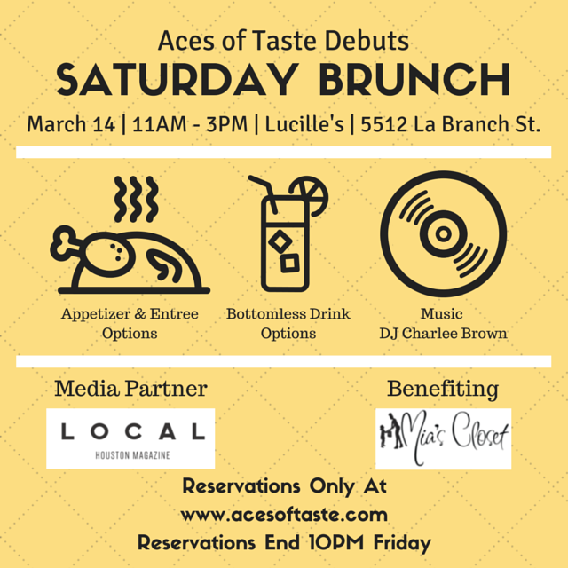 Join us on the patio of Lucille’s, in the heart of the Museum District, for an afternoon full of food, specialty cocktails, curated music by one of our favorite DJ’s, DJ Charlee Brown, and a couple of surprises, courtesy of the Aces of Taste team!